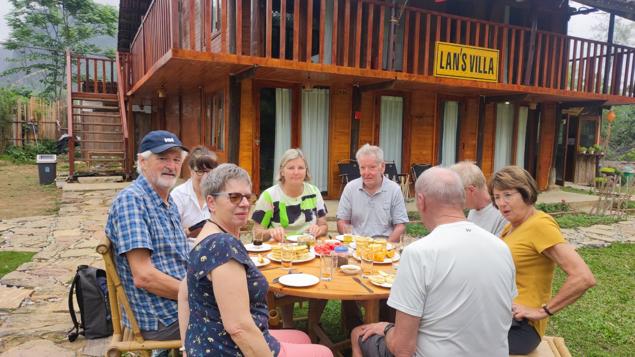 08h00: Đến Lan’s homestay, nhận đồ uống chào mừng, ăn sáng và gặp tài xế chuẩn bị chuyến đi.