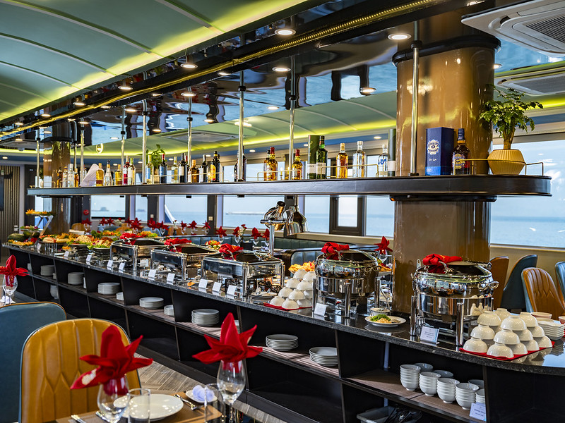13:00: Bữa trưa sẽ được phục vụ tại nhà hàng trong khi du thuyền đang lướt trên Vịnh Hạ Long – Lan Hạ tráng lệ, chiêm ngưỡng những kiến tạo đá hấp dẫn trong vịnh.
